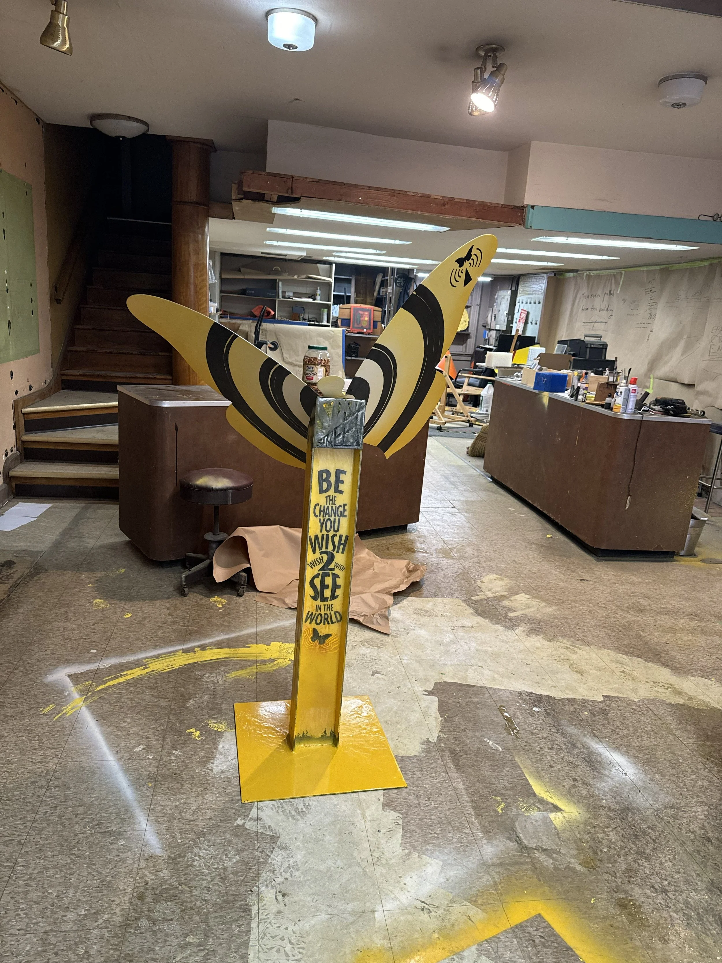 The first project in the building. It was time to have some fun and get creative. Using the old paint store turned studio. Top of the wing has a logo I developed and to raise awareness I put it on the shop to raise funds for the renovations.